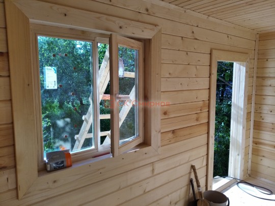 Окна мы устанавливаем настоящие деревянные стеклопакеты с фурнитурой как на пластиковых окнах, дерево используется клееное, повторюсь, не имитация деревянных стеклопакетов, а именно качественные окна.
