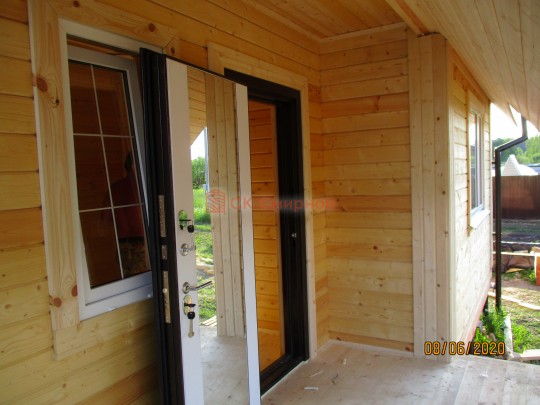 Именна та баня на фото и видео была построена в июне 2020 из клееного бруса 140х190 под ключ. Стоимость проекта составила около 1 млн руб. Подешевле будет построить такую баню из сухого бруса или даже из бруса естественной влажности, но в этом случае с отделкой придётся подождать 1-2 года.