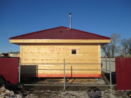 В ноябре 2020 мы завершили строительство первой одноэтажной бани с террасой 6 на 6 метров по проекту №306. Снаружи баня довольно простая: квадратный сруб, шатровая крыша, довольно просторная терраса. Таких бань по русским деревням и посёлкам найдётся немало. Нашу баньку отличает, прежде всего, качество исполнения.