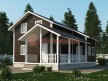 На фото представлен проект красивого дома №177 габаритами 8х11 метров и отличной планировкой общей площадью 140 квадратных метров. Можно выделить несколько особенностей проекта: терраса, веранда, санузел. Коттедж с мансардой, может использоваться как зимний, для постоянного проживания, коттедж.