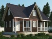 На фото представлен проект деревенского дома №191 габаритами 6х9 метров и отличной планировкой общей площадью 99 квадратных метров. Можно выделить несколько особенностей проекта: терраса, санузел. Сруб с мансардой, может использоваться как зимний, для постоянного проживания.