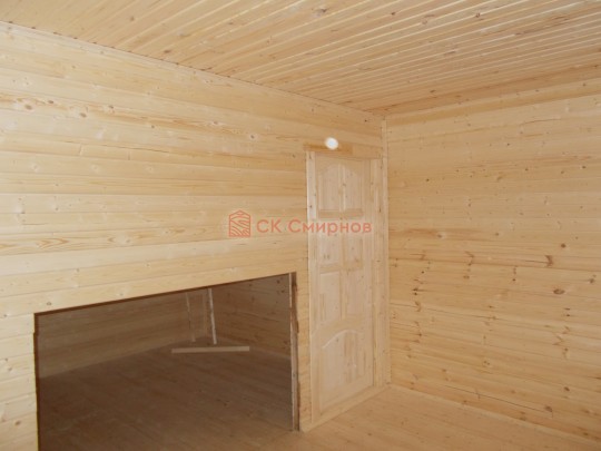 Из профилированного сухого бруса 9х14см, 14х14 см или 14х19 см. Сборка сруба в теплый угол на нагеля или гвозди 200 мм со сверлением отверстия в верхнем брусе (в зависимости от вида бруса).