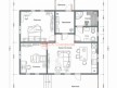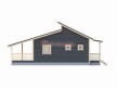 На фото представлен проект деревянного дома №297 габаритами 10х12.5 метров и отличной планировкой общей площадью 102 квадратных метров. Можно выделить несколько особенностей проекта: терраса, туалет, ванная, санузел, сауна. Это современный одноэтажный коттедж с отлично продуманной планировкой. Есть два входа на разные стороны, один из которых выходит на крытую террасу. Кухня объединена с гостиной, 2 спальни изолированы друг от друга.